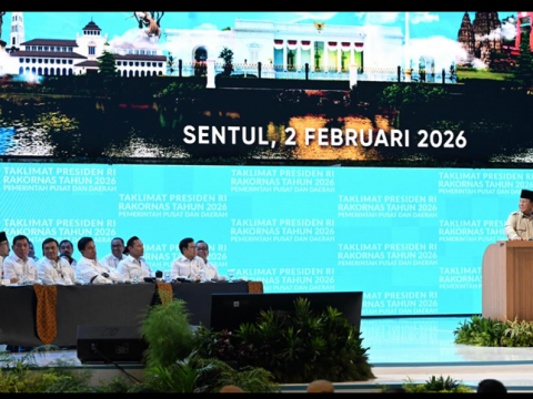 Presiden Prabowo menyampaikan taklimat pada Rapat Koordinasi Nasional Pemerintah Pusat dan Daerah Tahun 2026 di Sentul International…